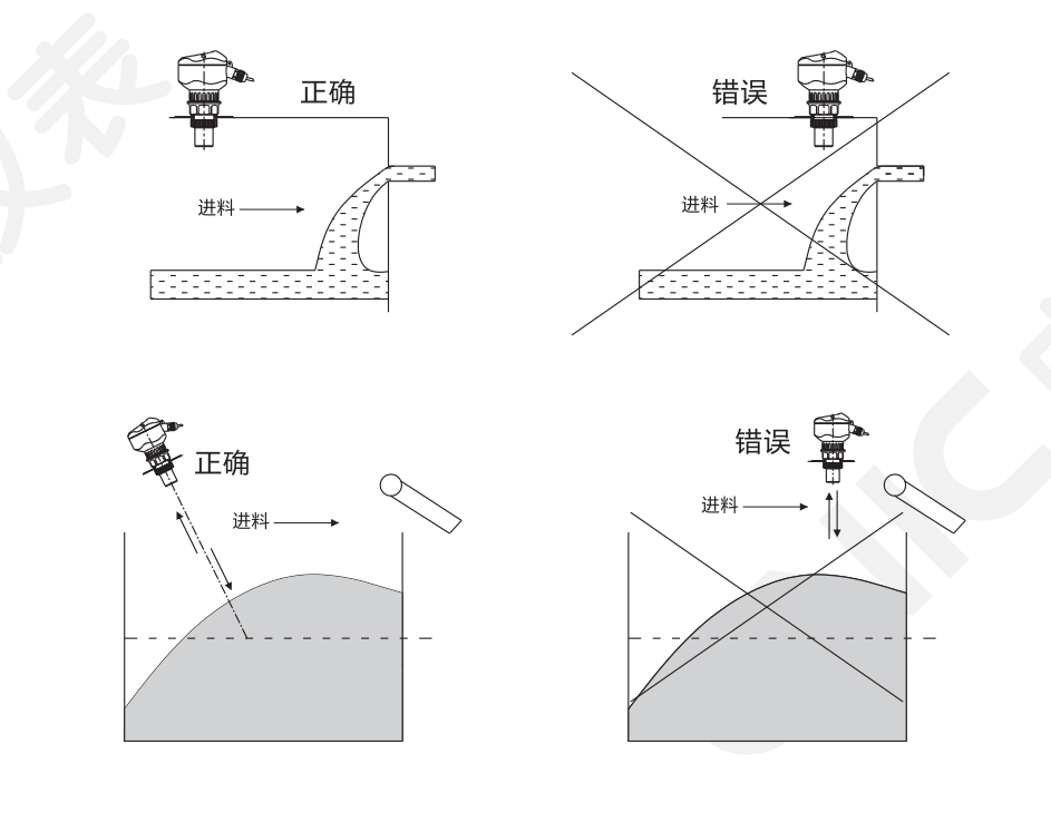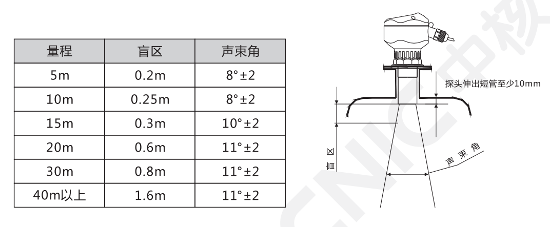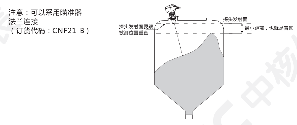 5、若最高物位不能避開盲區(qū),可以增加一段接管來解決;