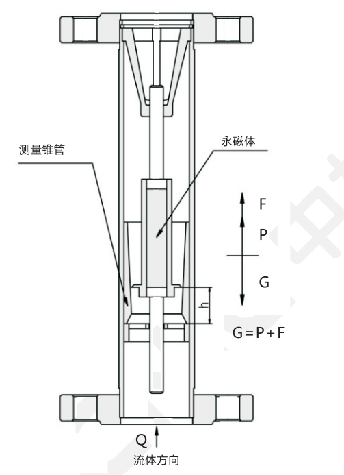 浮子在測量管中,隨著流量的變化,將浮子向上移動,早某一位置浮子所受的浮力與浮力重力達到平衡。此時浮子與孔板(或椎管)間的流通環(huán)隙面積保持一定。環(huán)隙面積與浮子的上升高度成正比,即浮子在測量管中上升的位置代表流量的大小,變化浮子的位置由浮子內部永磁體傳輸到外部的指示器,使指示器正確地指示此時的流量值,同時通過調制電路,將信號轉換成標準4~20mA電流信號或者數字信號輸出。